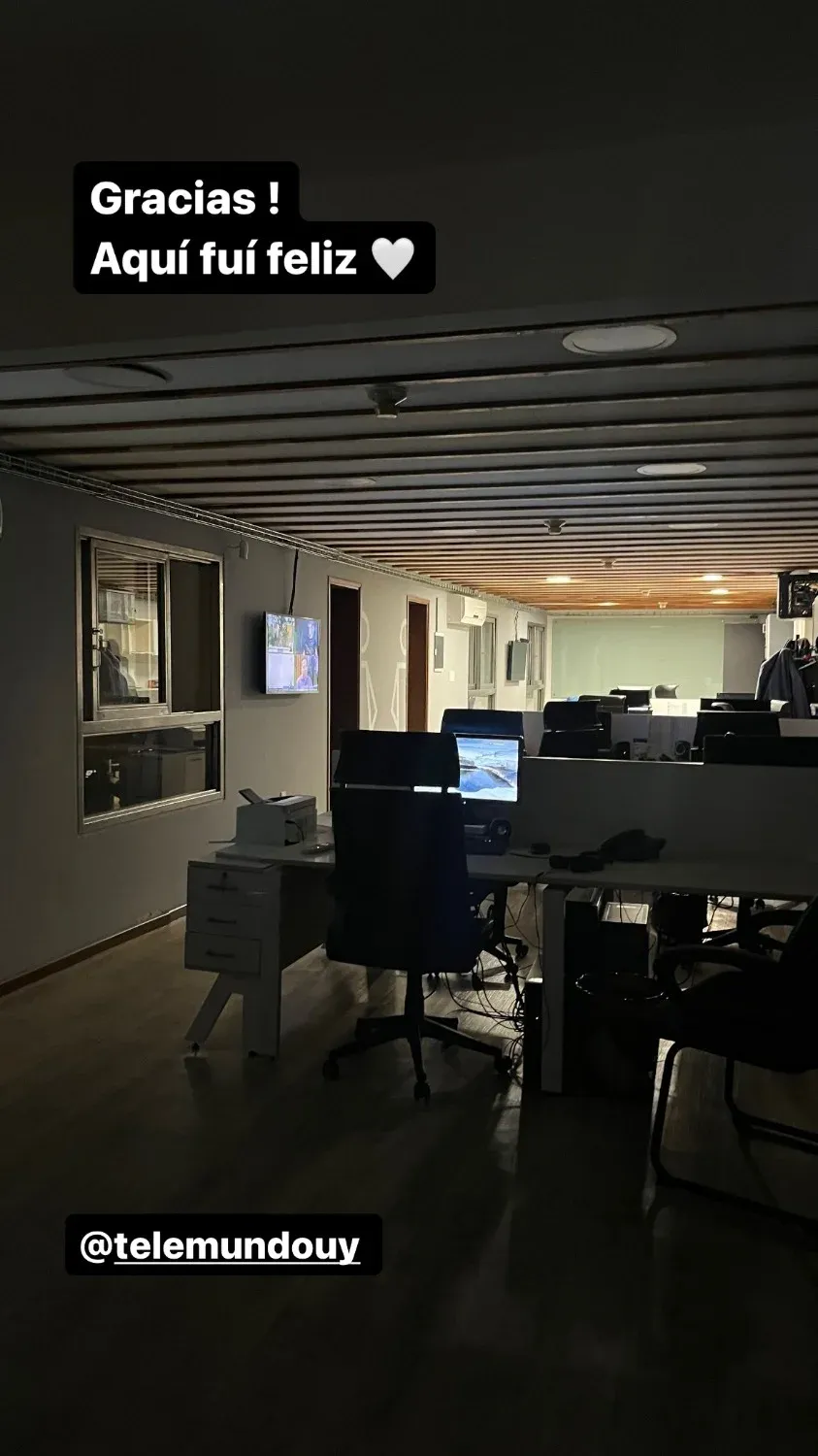 A última hora del domingo, Da Silva publicó en sus historias de Instagram una foto de la redacción de Telemundo en penumbra con un agradecimiento final. "Aquí fui feliz".