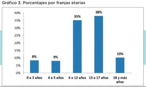 El 54% de las victimas son niñas y adolescentes mujeres mientras que el 46% son varones. Y a diferencia de años anteriores, en la franja etaria en la que se registraron más situaciones de violencia fue entre la de 13 a 17 años (38%). De 6 a 12 años fue el 35% mientras que el 9% fue de 4 a 5 años.