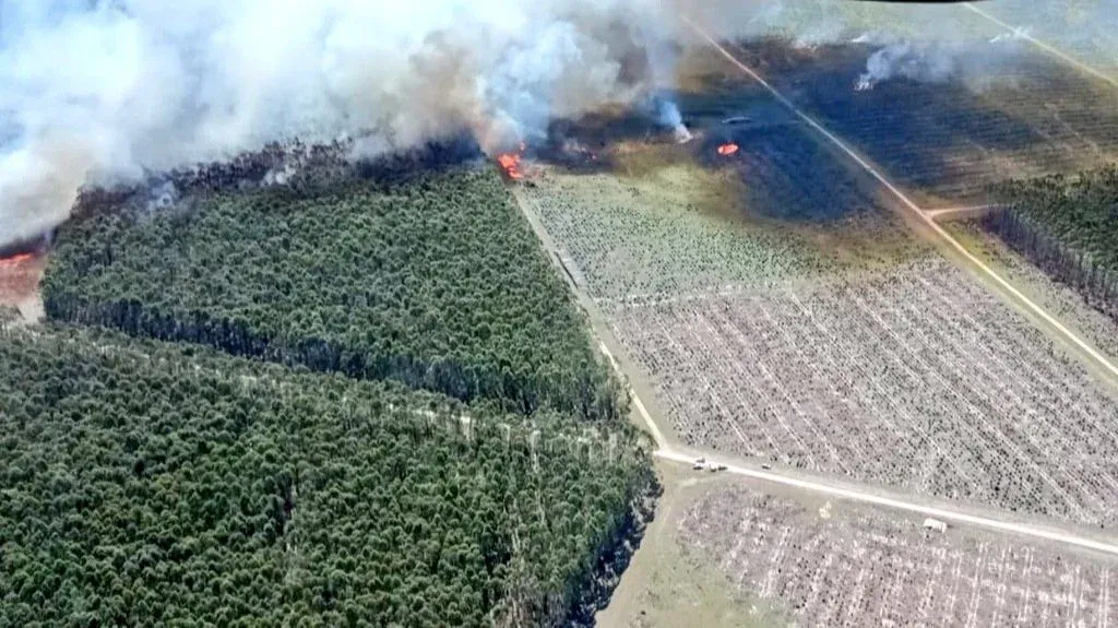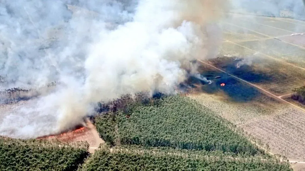 Más de 200 personas trabajan desde la tarde de este miércoles para mitigar un incendio forestal de 25 hectáreas que se originó próximo a la localidad de Algorta en Río Negro.