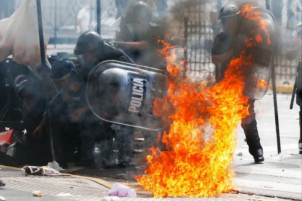 La policía avanzó con el objetivo controlar el centro porteño, pero grupos violentos respondieron con pedradas, agravios y una bomba molotov contra la policía. En algunos puntos de la ciudad se provocaron incendios, por parte de personas que circulaban con las caras tapadas, o algunos incluso, a rostro descubierto.