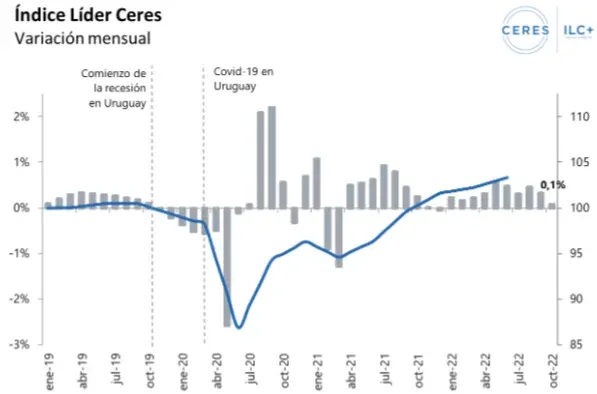 El Índice Líder (ILC) de octubre de Ceres tuvo una tasa levemente positiva de 0,1% y alcanzó 10 meses consecutivos de registros favorables. Si el índice tiende a converger hacia la neutralidad en los próximos meses podría marcar una desaceleración de la economía. No obstante, para que eso se compruebe, habrá que esperar los registros de noviembre y diciembre.