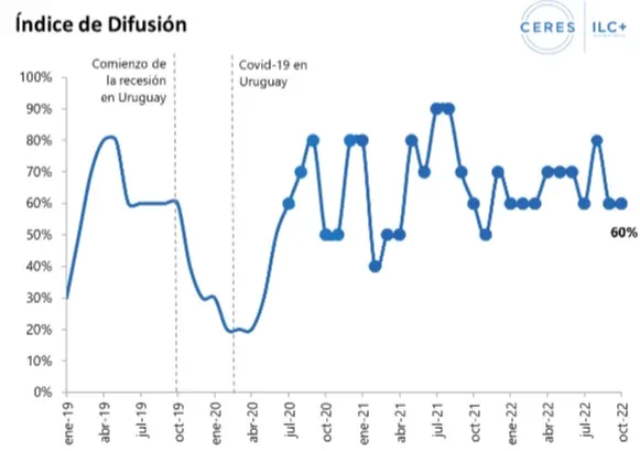El dato del indicador de octubre de anticipo de la tendencia económica mostró relación con el Índice de Difusión (ID) que en el mes fue de 60%.