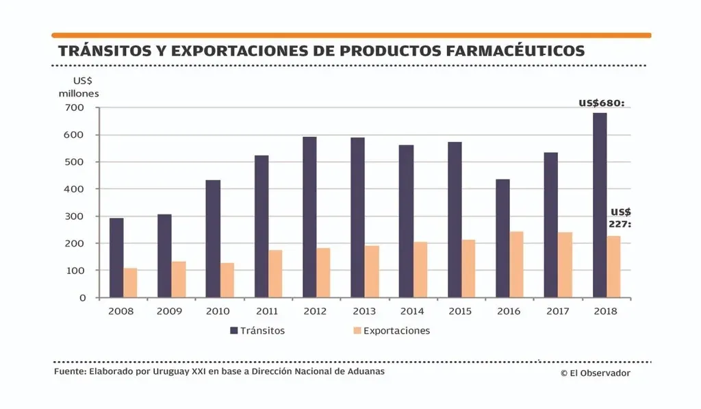 Un informe elaborado por el instituto Uruguay XXI señaló que las exportaciones de productos farmacéuticos tuvieron un fuerte desarrollo en los últimos años y pasaron de US$ 109 millones en 2008 a US$ 227 millones en 2018.