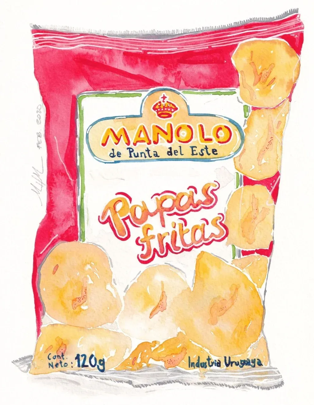 Mariana Hernández Las acuarelas de Industria Uruguaya se pueden adquirir en ferias de ilustración o a través de la cuenta de Instagram