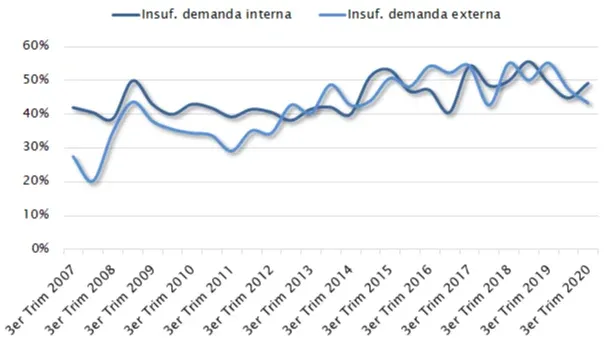 Dichos motivos fueron declarados principalmente por las empresas pertenecientes a las agrupaciones de alimentos, bebidas y tabaco, y químicos y plásticos.