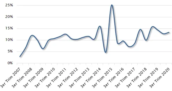 Es decir, el aumento de la capacidad ociosa del sector industrial en relación al tercer trimestre del 2019 se debió, en mayor medida, al comportamiento de las empresas de mayor tamaño.