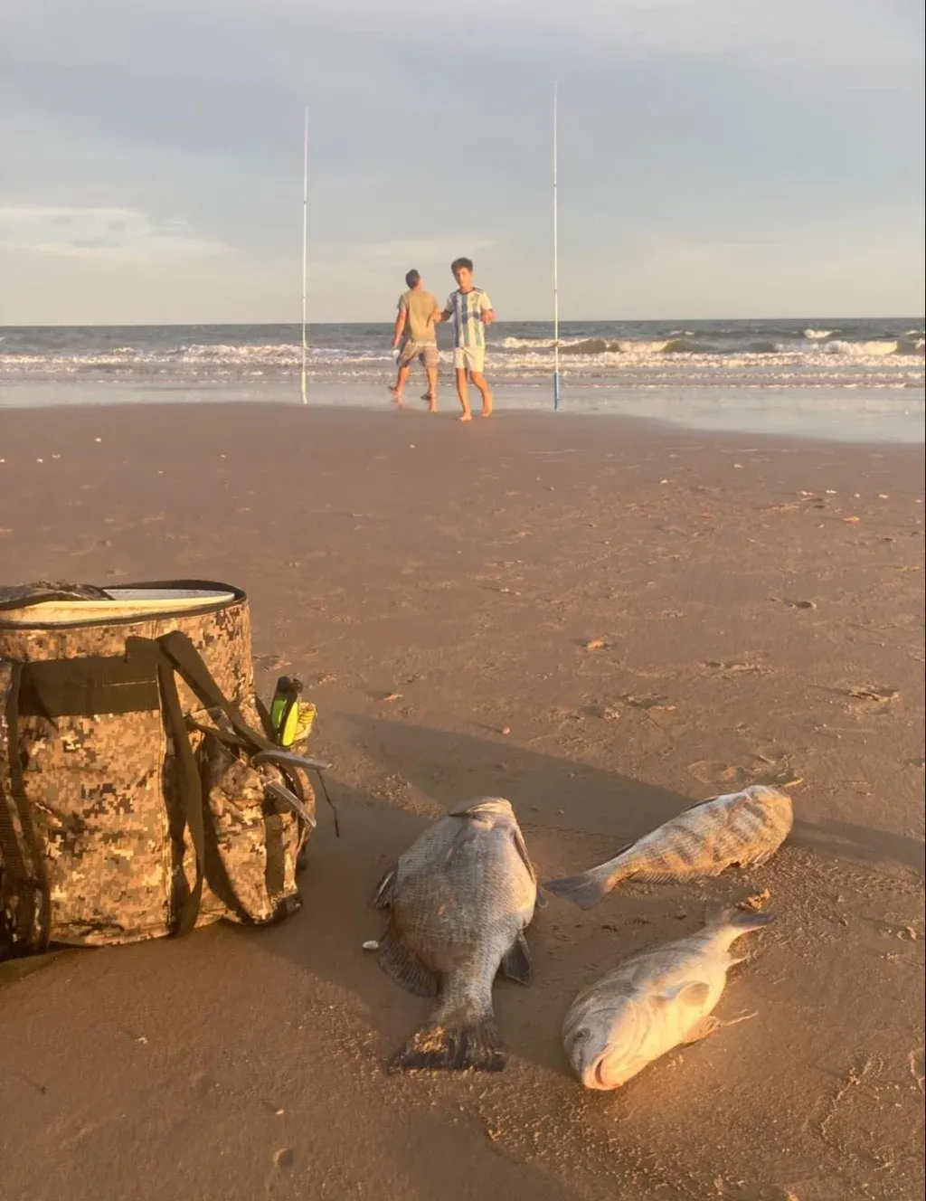 Todos los días, cientos de pescadores tiran la caña en las playas de la Ciudad de la Costa, con resultados sorprendentes por la cantidad de presas y por su tamaño.