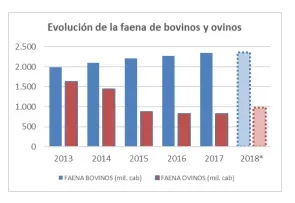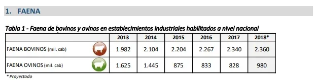 En el caso de los ovinos, la faena industrial sería superior a la registrada en 2017, ubicándose próxima a 980 mil cabezas. Sería la mayor de los últimos cuatro años pero aún por debajo del millón de animales faenados.