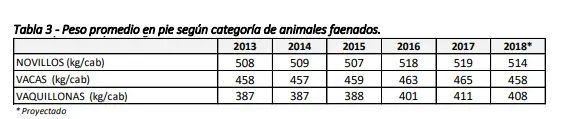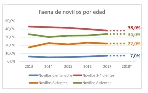 En otro orden, la faena de novillos en 2018 alcanzaría cifras superiores a 1,12 millones de cabezas, pero sería algo menos a la del 2017 (-1%). En el caso de hembras, la faena será levemente superior, lo que determina la mayor faena de 2018 y manteniendo la alta presencia de vaquillonas (12,6%) en el total de la faena. La edad de faena de los novillos mantiene globalmente la misma estructura que 2017. En tanto, en otro indicador relevante, algunos kilos en pie menos en todas las categorías muestra un cambio de la tendencia observada en la última década.