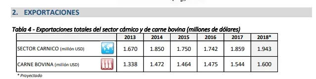 En relación a las exportaciones totales del sector cárnico (carnes, menudencias, productos cárnicos y subproductos), estarán en torno a los US$ 1.940 millones, ubicándose más del 4% por encima de 2017.