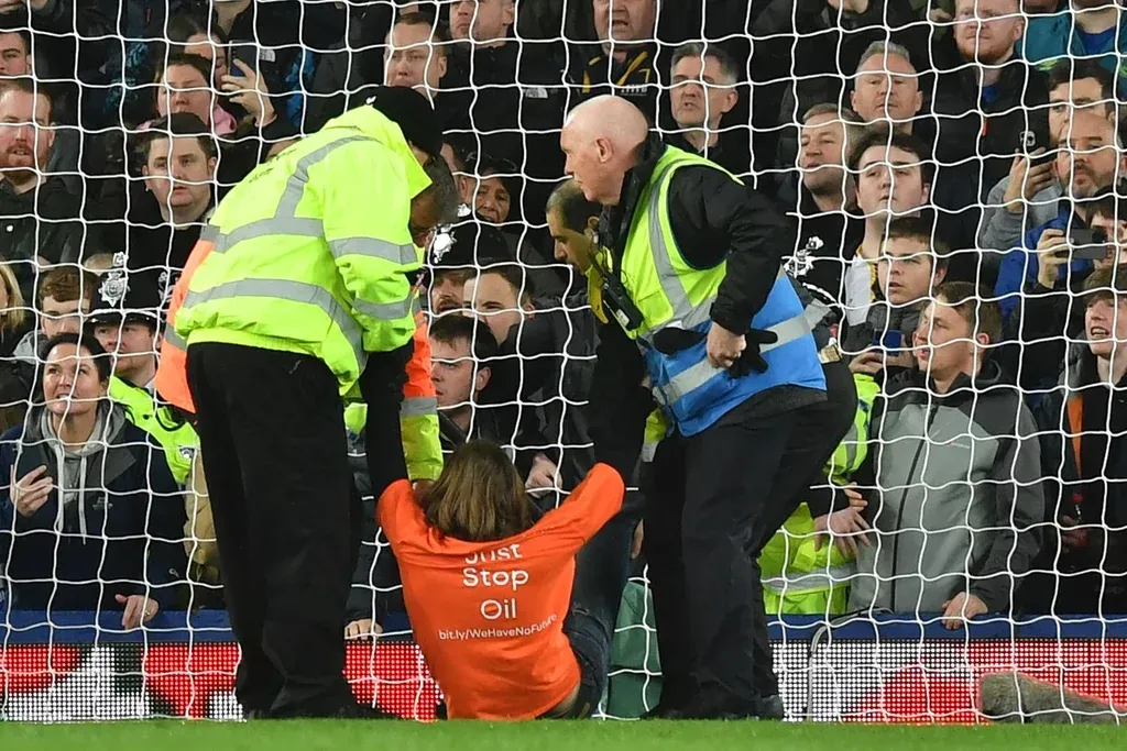 El partido se vio alargado 14 minutos sobre el tiempo reglamentario por la insólita acción de un manifestante que se ató a un poste del arco.