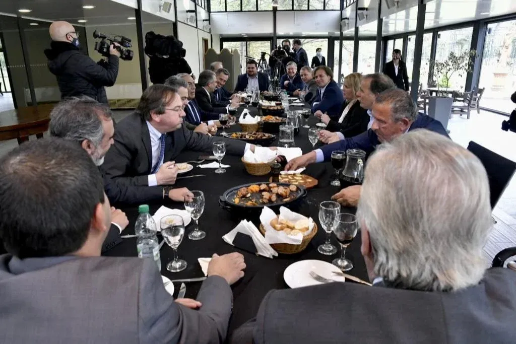 Los intendentes electos por el Partido Nacional empezaron la semana con una agenda cargada. Sobre las 10 la mañana fueron recibidos por el Directorio blanco en la sede partidaria de Ciudad Vieja y al mediodía se trasladaron hasta la Residencia de Suárez y Reyes en el Prado para compartir un asado con el presidente de la República, Luis Lacalle Pou.