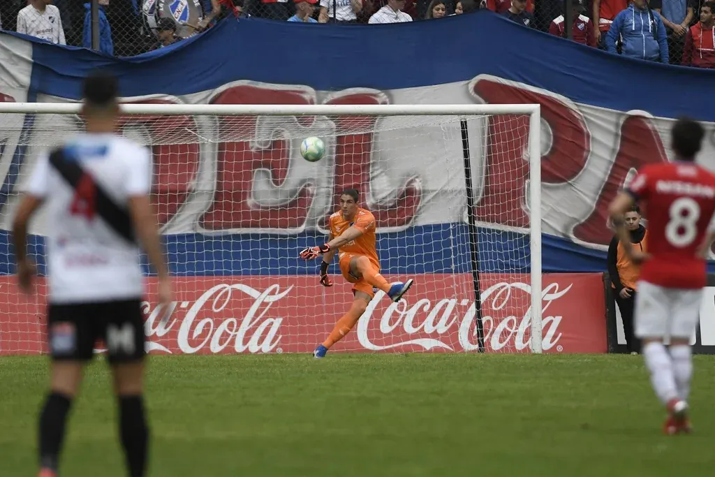 El golero de Nacional se retira de la cancha con gestos de preocupación. En el vestuario fue revisado. Al no comprobarse nada extraño volvió para el complemento.