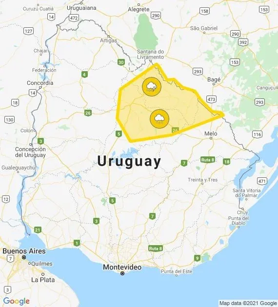 Sin embargo, la autoridad meteorológica mantiene la vigilancia en los departamentos de Rivera, Tacuarembó, Paysandú y Cerro Largo. De ser necesario, Inumet emitirá nuevos avisos respecto a la situación meteorológica en esa zona del país.