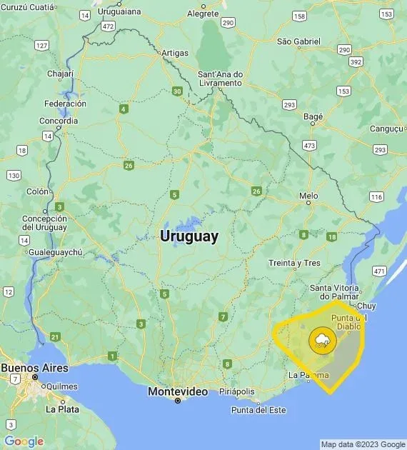 El Instituto Uruguayo de Meteorología (Inumet) emitió una alerta amarilla por tormentas fuertes para Rocha y Maldonado.