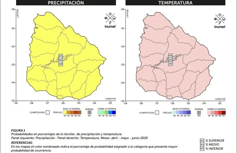 El Instituto Nacional de Meteorología (Inumet) pronostica pocas lluvias por debajo y temperaturas por encima de lo normal para el próximo trimestre.