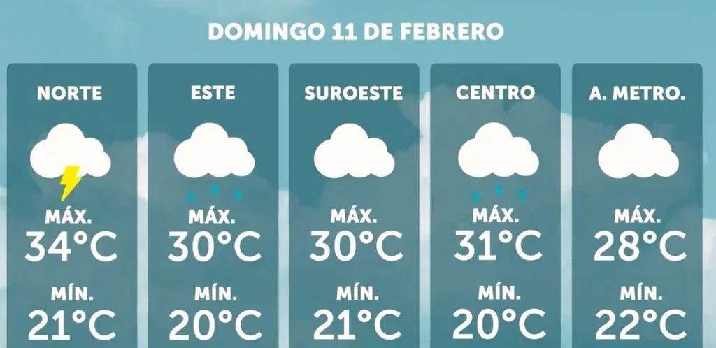 La temperatura máxima pronosticada para el sábado es de 34°C, mientras que la mínima es de 20°C.