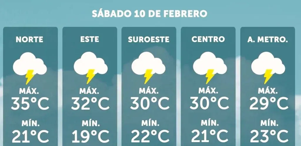 La temperatura máxima pronosticada para el sábado es de 35°C, mientras que la mínima es de 19°C.