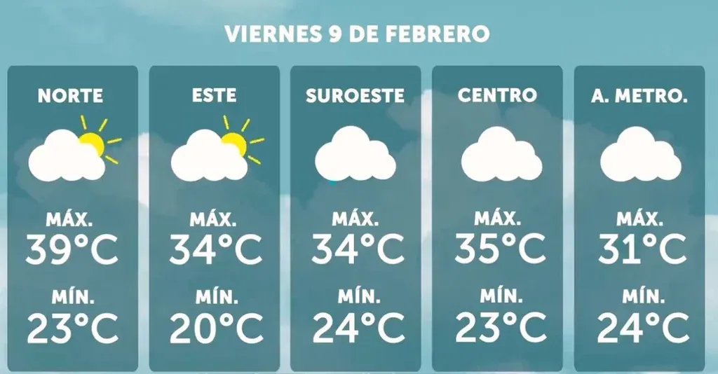 La temperatura máxima pronosticada para el viernes es de 34°C, mientras que la mínima es de 20°C.