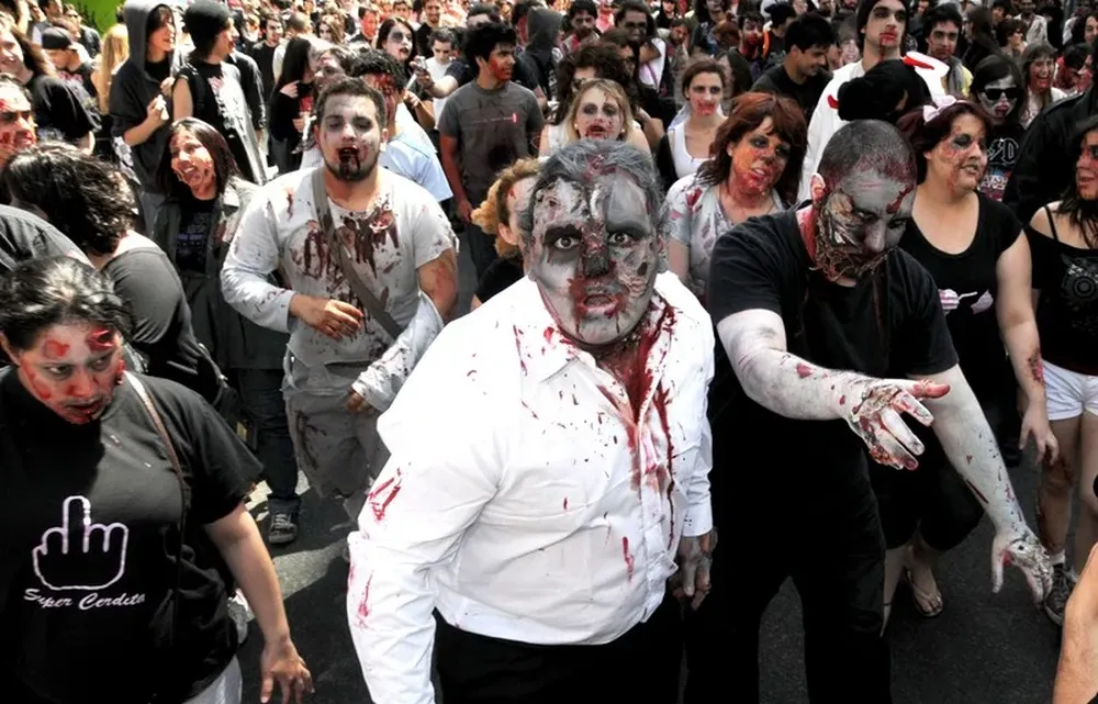 Varias personas participaron de la “Zombie Walk” que se llevó a cabo en la Plaza Independencia y la avenida céntrica