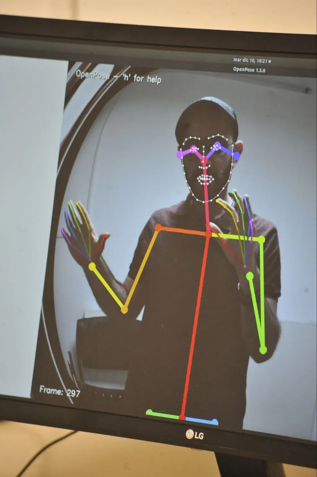 La meta es que con tres cámaras se registre una cantidad suficiente de movimientos para entrenar un software que reconozca la lengua de señas uruguaya. Stassi explica que hasta ahora han utilizado lo que se llama aprendizaje por transferencia. Es decir que toman programas de reconocimiento que ya existen, en este caso Deep Hand y Open Pose, y los adaptan con los registros de la lengua de señas nacional, que no es igual a la argentina ni a la de otros países. “Hace es una suerte de traducción al asociar tal o cual postura y movimiento de las manos con un significado lingüístico”, indica.
