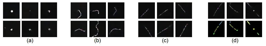 Por ejemplo, un tipo de traza de luz es en línea recta, que suelen ser causados por muones, un tipo de partícula cósmica. Otros trazos tienen forma de "gusano", y suelen indicar radiación beta, que está causado por la desintegración radiactiva.
