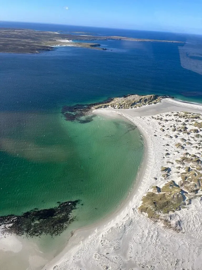 —¿Ves esa playa allá? —pregunta el piloto del helicóptero, de unos treinta y largos años, mientras sobrevuela por una playa de agua cristalina y arena blanca. La pregunta interrumpe un largo silencio— Cuando era chico solo pude ir una vez. Estaba lleno de minas, las pusieron los argentinos. Fue uno de los últimos lugares en ser desminados.