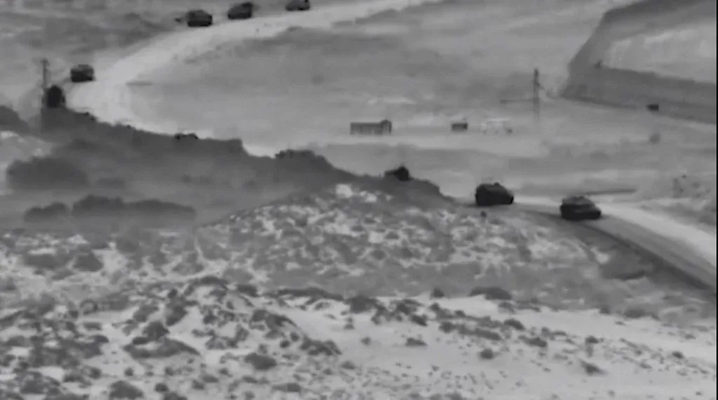 Imágenes de video en blanco y negro subidas por el ejército mostraron una columna de vehículos blindados y niveladoras que atraviesan lo que parece ser una cerca fronteriza.