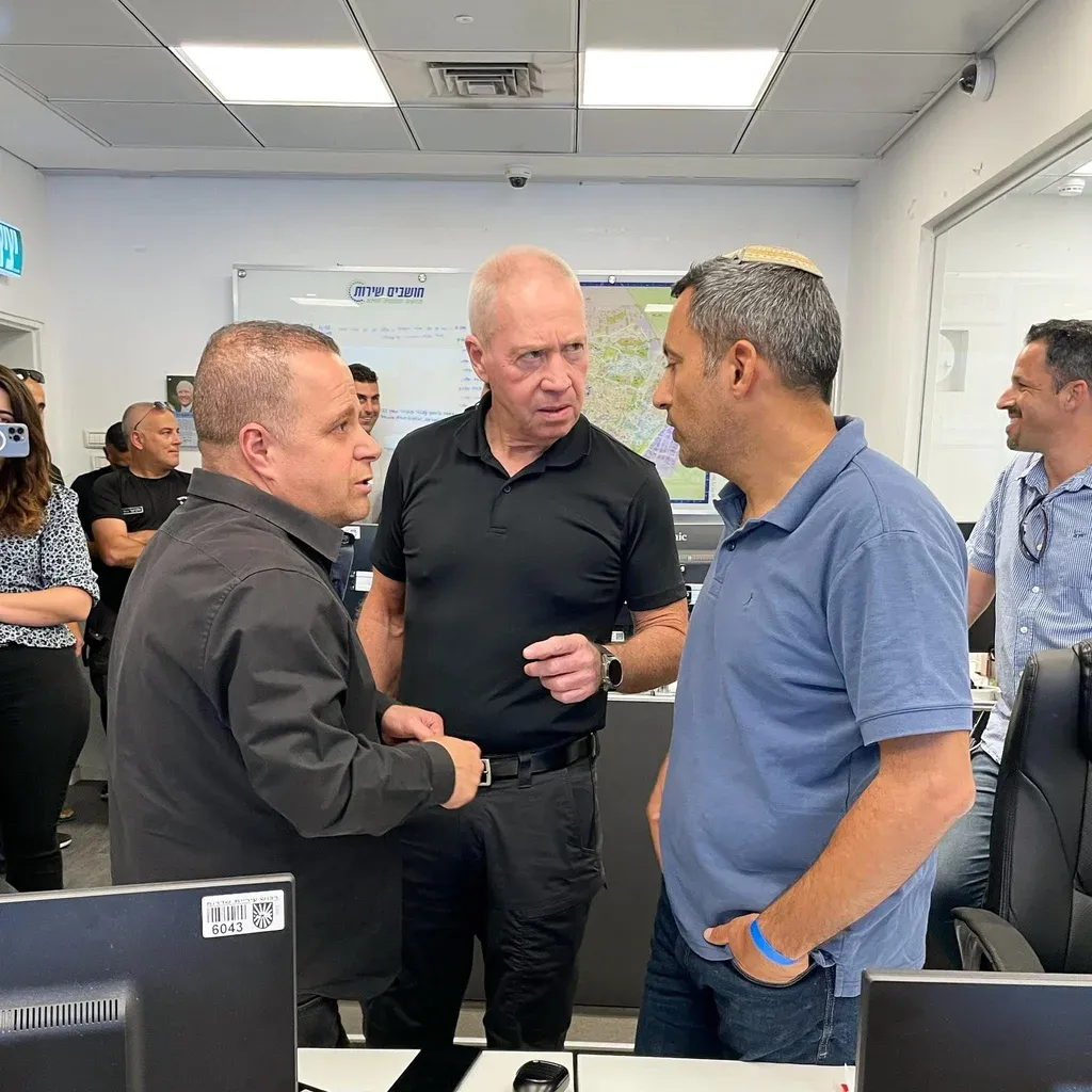 El ministro de Defensa de Israel, Yoav Galant, (centro) ordenó el bloqueo completo de la Franja de Gaza