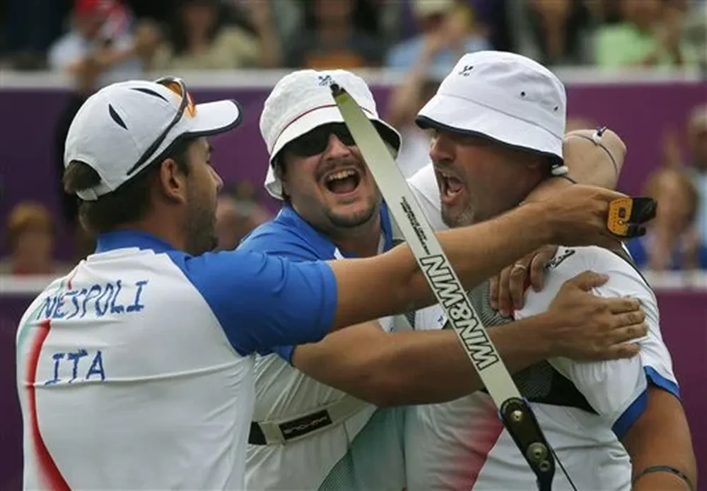 Los italianos Michele Frangilli, Marco Galiazzo y Mauro Espoli batieron en la lucha por el oro a los estadounidenses Jake Kaminski, Brady Ellison y Jacob Wukie en un duelo que se resolvió de forma magnífica con la última flecha.