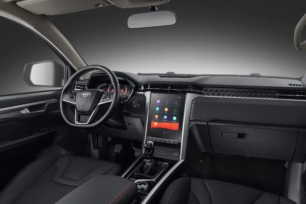 JAC T8 PRO proporciona confort y amplitud. Una pickup que toma algunos elementos de las SUV de JAC, como el volante multifunción forrado en cuero ajustable en altura y el cuadro de instrumentos digital de 7". Sin embargo, el protagonista absoluto en el interior es una nueva pantalla vertical de 10,4 pulgadas, con soporte para Apple CarPlay y Android Auto.