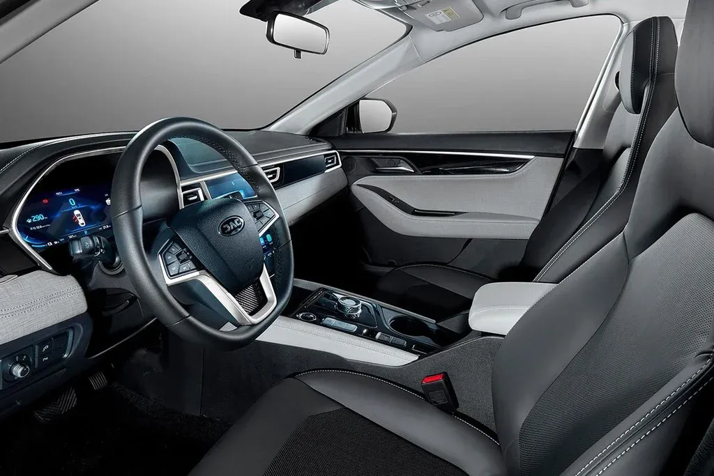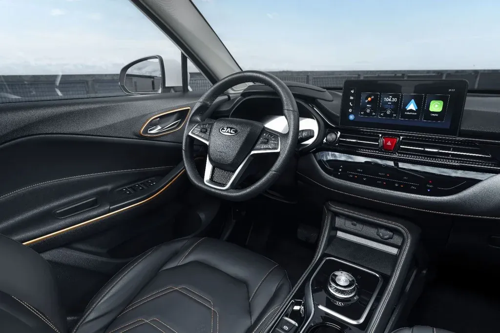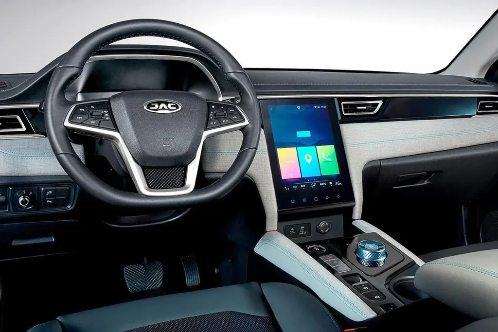 El interior del nuevo e-J7 combina elegancia y lujo con las últimas tecnologías. Está equipado con asientos de cuero, llave remota, botón One Touch en ventanas + antipinzamiento, panel de instrumentos LED, pantalla multimedia + radio MP5 + Bluetooth +Apple Carplay + Android Auto y 8 speakers.