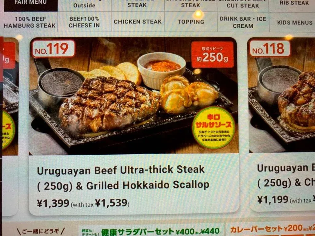 INAC Menú digital en Steak Gusto. A partir del 29 de julio se sumarán a la promoción dos cadenas más, una de cocina occidental y otra más tradicional de Japón, en varios locales y con base en diferentes cortes.