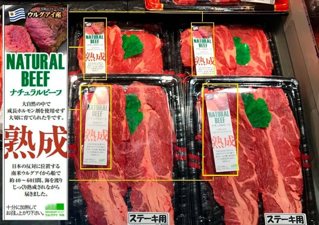 Los cortes se embarcaron en carga enfriada y luego se porcionaron en destino para suministrar al local de venta. Las bandejas tienen un sticker indicando el origen de Uruguay, que es carne natural, enfriada y madurada, y el logo con la marca de carnes de Uruguay.