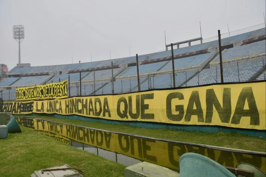 De pronto los portones de los taludes se abrieron. Tres personas aparecieron en la Ámsterdam y empezaron a desplegar banderas. “La única hinchada que gana partidos”, decía una. “Los dueños de la fiesta”, rezaba otra. Del lado opuesto, en la Colombes, se visualizaba: “Nacional o muerte”, y otra: “La primer hinchada del mundo”.