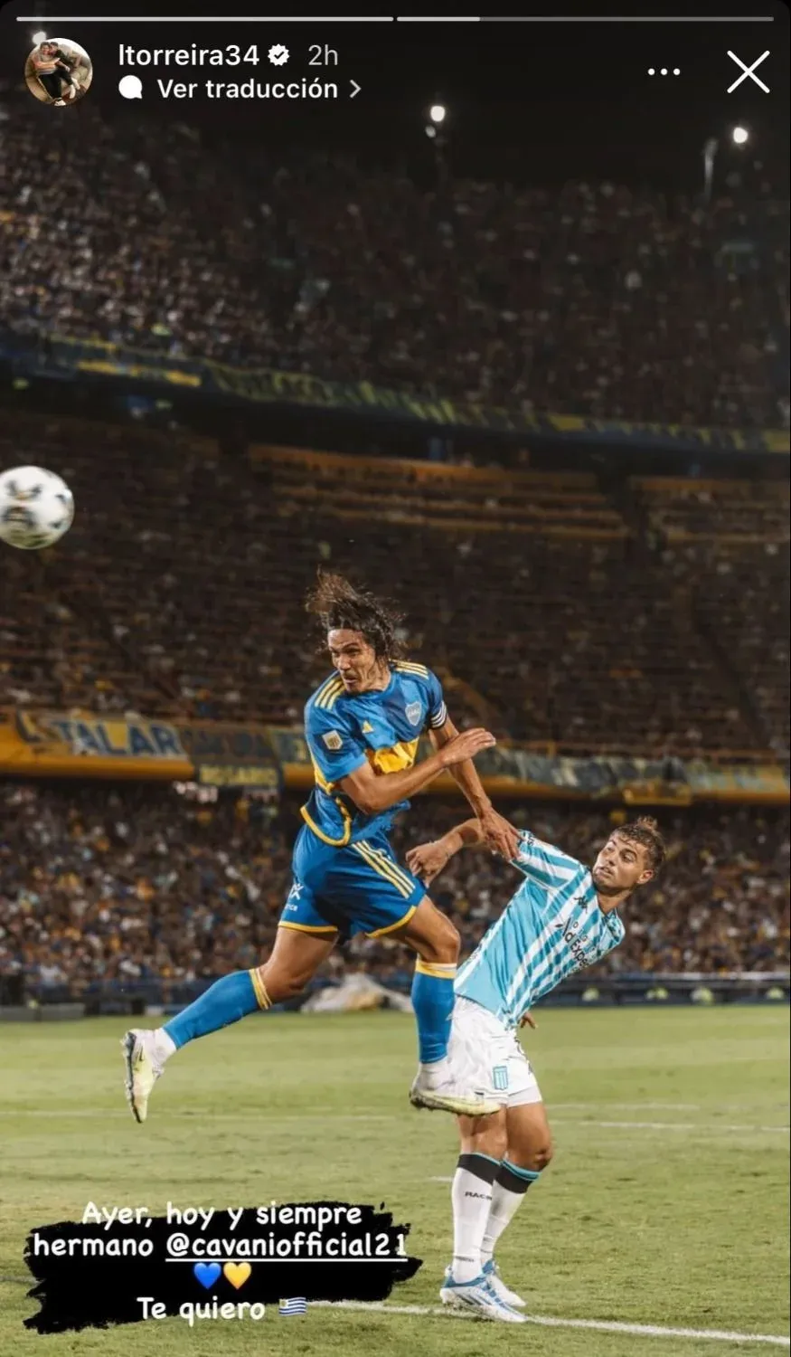 "Ayer, hoy y siempre hermano @cavaniofficial21.Te quiero", le comentó Torreira y Cavani respondió: "Yo también".