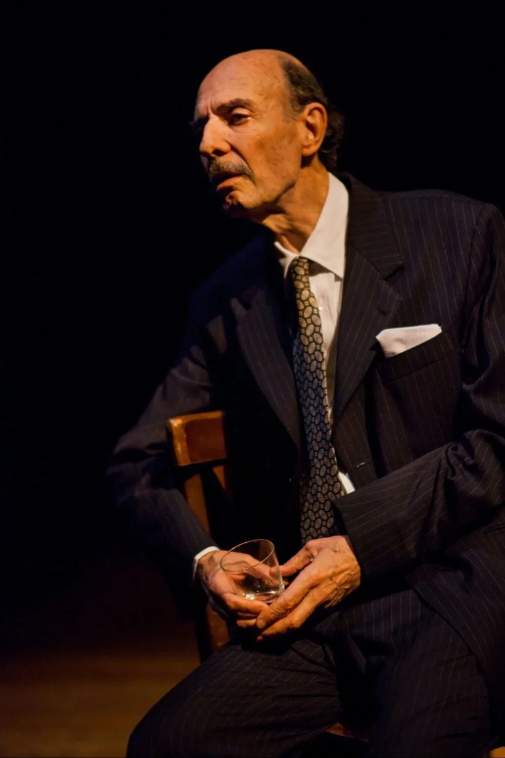 Es algo muy especifico. Porque el que más o el que menos puede tener referencias del otro actor. Y no es por las comparaciones, pero es una responsabilidad. Porque estás actuando a un actor que existió, un ser humano que existió, que fue un ícono del cine mudo, que después pasó al cine sonoro con igual éxito, lo que era una rareza. De hecho, en el texto de la obra se nombra a algún colega que quedó por el camino, aunque era muy bueno en el cine mudo. Pero John Barrymore en un momento se volcó al teatro. Y empezó a lo grande: haciendo teatro shakesperiano. Tuvo dos mojones muy grandes, Hamlet y Ricardo III. La historia que cuenta esta obra es una ficción, pero sobre datos reales de su vida. Recorre sus amores, sus esposas, sus adicciones, el alcohol. Está en el tramo final, es aproximadamente un mes antes de su muerte, tomado por el alcohol, semidestruido. Con problemas de memoria. Por unos pocos dólares alquila un teatro por unas horas, porque quiere hacer el intento de recordar Ricardo III junto con su amigo y apuntador, que es el que lo va a respaldar. Y la obra es el recorrido de ese hombre, en el final de su carrera, recordando su vida, tratando de recordar la letra, actuando, diciendo textos de Shakespeare. Es muy patético. El texto de William Luce es un placer. Alterna la ficción con la realidad y con textos de Shakespeare, que cuando llega ese momento es un sacudón porque tenés que estar a la altura. Shakespeare es un autor que te pone a prueba siempre.