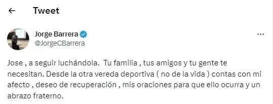 “José, a seguir luchándola”, escribió Barrera en Twitter.