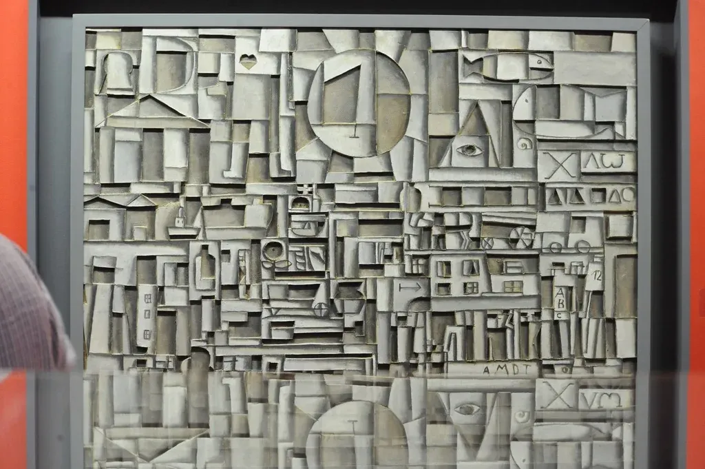 Se para al lado de dos piezas familiares y cuenta una anécdota tan afortunada como azarosa. Un día llegó a la casa de remates Gomensoro una obra de su padre. Cuando la fue a ver la encontró familiar y después de observarla con detenimiento y compararla con otra de las obras de la colección del museo, Óleo s/cartón superpuesto, lo descubrió: juntos formaban el positivo y negativo, una técnica de relieve en cartón que Gurvich puso en práctica a lo largo de toda su obra. Ese cuadro, Constructivo Montevideo, vida, tradición y fe, era la contracara del que tenía. “Esto lo tengo que comprar para ponerlo al lado de su hermano gemelo", pensó Gurvich. Y lo compró. "Esperemos que nunca más se separen, estuvieron separados como 30 o 40 años”, agrega.
