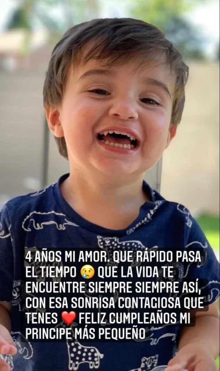 “4 años mi amor. Qué rápido pasa el tiempo. Qué la vida te encuentre siempre así, con esa sonrisa contagiosa que tenés. Feliz cumpleaños mi príncipe más pequeño”, escribió Josema en las redes.