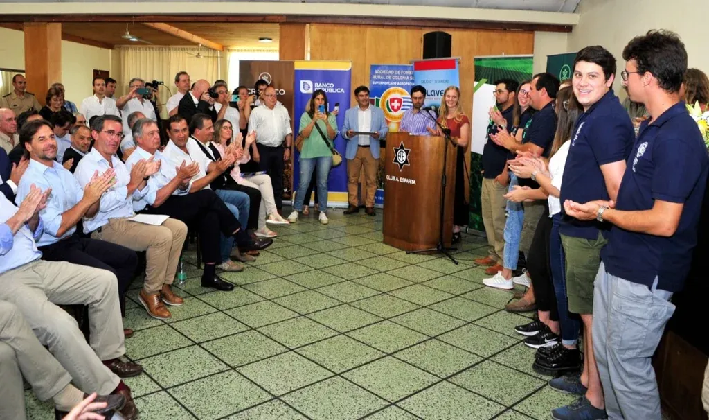 “La juventud rural ocupa un lugar fundamental en el presente y en el futuro del desarrollo del sector agropecuario. Somos los hijos de los productores y elegimos quedarnos acá, en el campo que es nuestra casa. Este es nuestro proyecto de vida”, resaltó Waller ante la atenta mirada de Lacalle Pou, miembros del gobierno y los socios de CAF que se reunieron en Colonia Valdense para despedir el año.