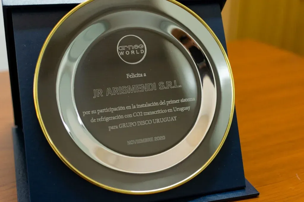 La compañía es representante de Arneg, una firma italiana con sede en Argentina. La empresa internacional le dio un reconocimiento tanto a JR Arismendi como a Grupo Disco por haber hecho la primera instalación de frigorífica con gas CO2 en Uruguay. Además, la instalación proyectada por Arneg incluye el aprovechamiento del calor generado por el sistema para calentar agua que posteriormente pueda ser utilizada en la tienda.