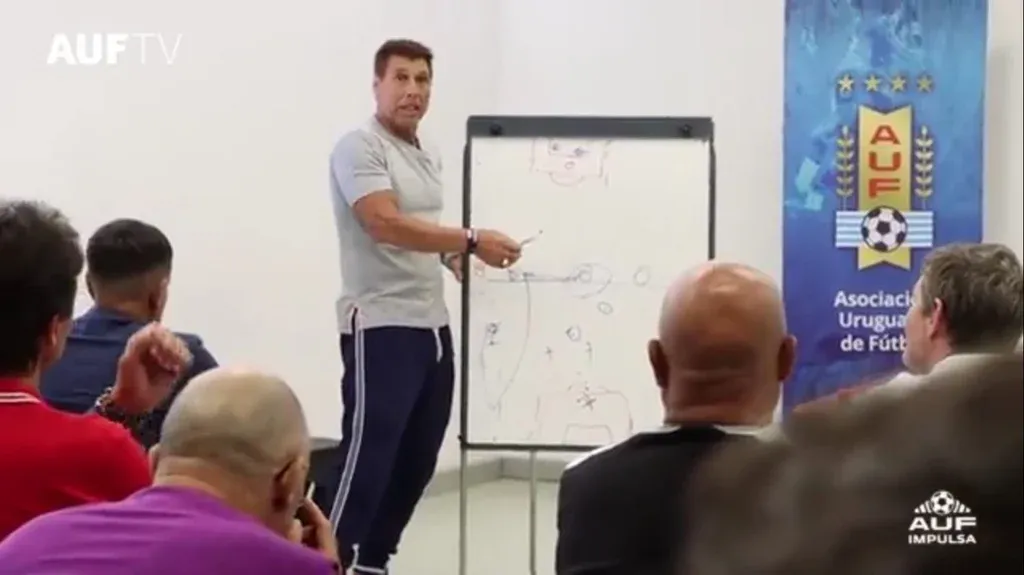 AUF TV Lasarte, Arias y Carrasco Además, la capacitación tuvo participación de entrenadores vía Zoom, por donde se pudo ver a Paulo Pezzolano en línea desde Brasil.