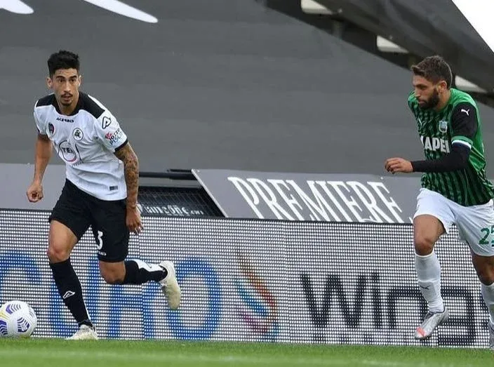 Juan Manuel Ramos defendiendo a Spezia de Italia