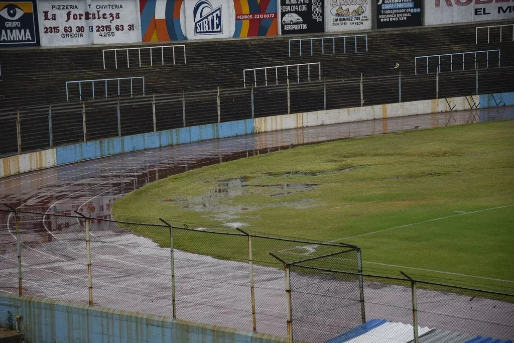 La cancha de Progreso tiene dos problemas que visualizaron los jugadores. Una canaleta y un muro. La canaleta justamente está entre el campo de juego y el muro.