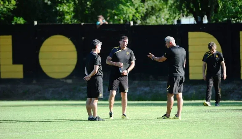 El Vasco Aguirregaray con Bengoechea y José Enrique De los Santos, cuando era ayudante técnico de Peñarol