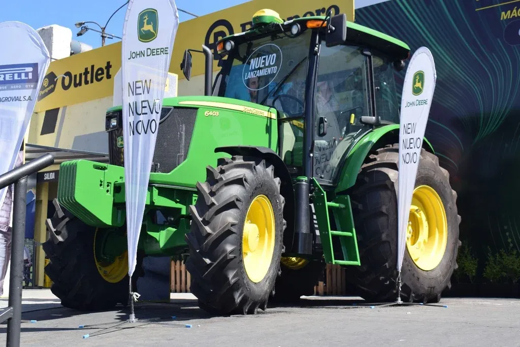 Con dos stands próximos al ruedo, “donde mostramos parte del portafolio de soluciones”, una de las novedades es el tractor John Deere 6403, un diseño actualizado, 109 HP, 2.400 RPM, transmición SyncShuttle 12A - 4R 12 velocidades de avance y cuatro de retroceso entre otros detalles, que procede de México y tiene un precio de US$ 41.000.