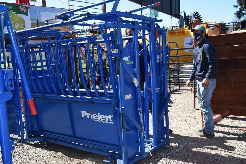 Milagros Herrera y Nicolás Llaneza, en el stand de Agroventas, hablaron de una de sus propuestas: el cepo cabecero Priefert, tecnología de Estados Unidos, que tiene un precio de US$ 1.400 y es adaptable para cualquier tubo tradicional, permitiendo un manejo simple y con garantía “para toda la vida”.