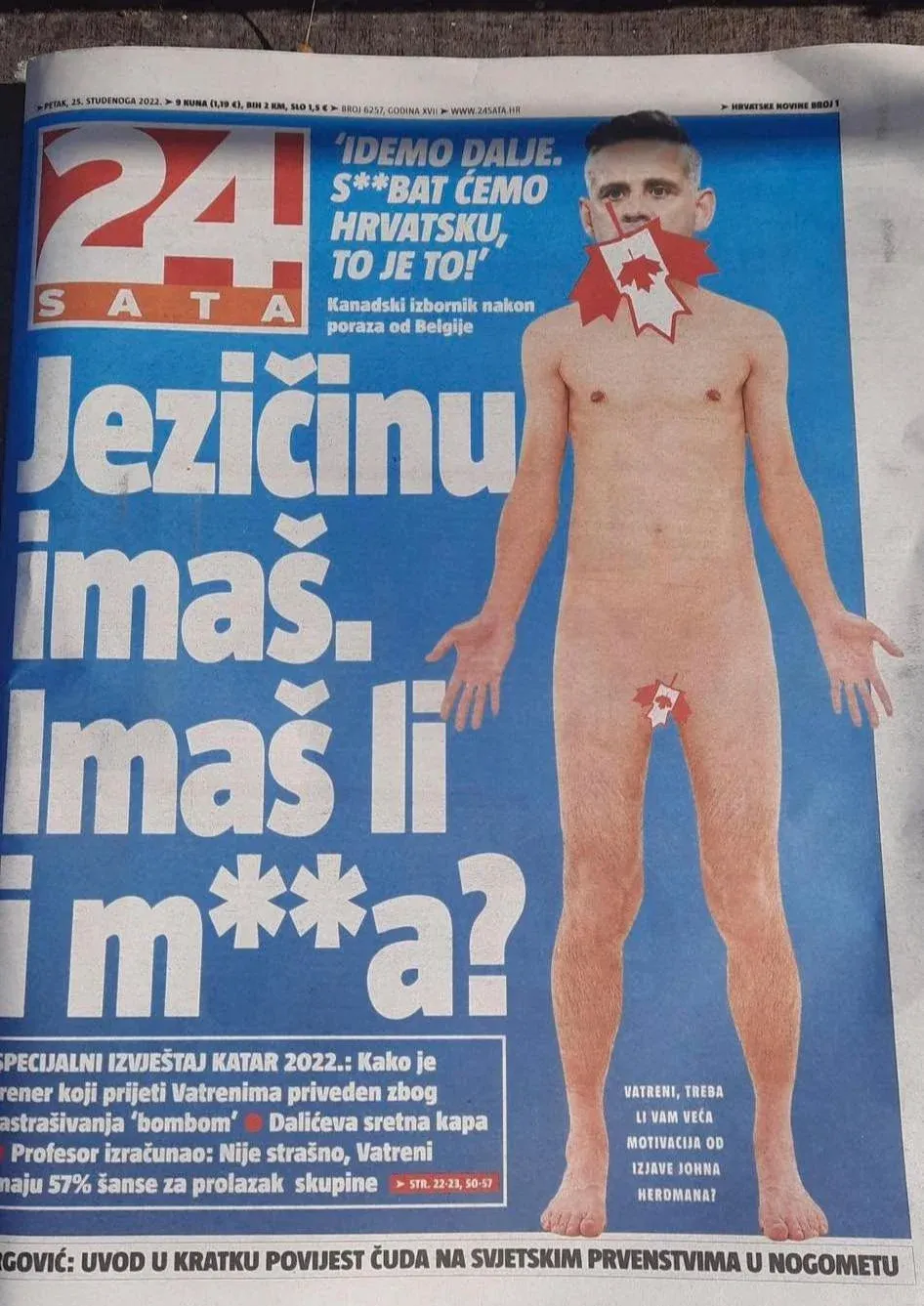 El diario croata 24 Sata sacó una portada donde Herdman aparece desnudo, solo con dos hojas –las de la bandera canadiense– que le tapan la boca y los genitales. "Tenés la boca, ¿pero tenés también las pelotas?", decía el titular, según tradujo el medio británico Daily Mail.