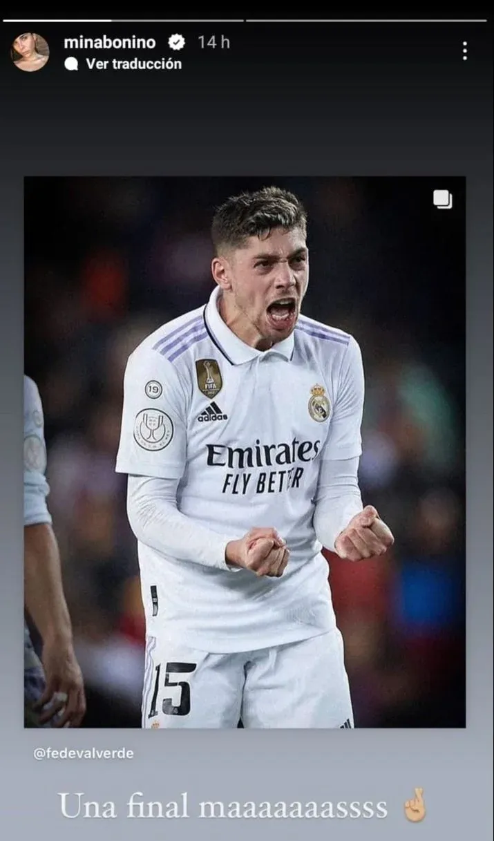 La pareja de Valverde, Mina Bonino, también celebró el triunfo merengue ante los catalanes y compartió una foto del mediocampista en sus redes.